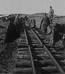 Due to delivery difficulties, no nails were available to fix the rails to the sleepers. Therefore, 11,000 nails were forged on site.[3]