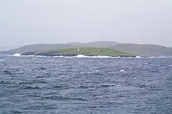 Lunna Holm is a small island near Lunna Ness (Mainland, Shetland), in the Shetland Islands. It is 27 metres (89 ft) at its highest point.