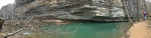 Lusk Creek Canyon is the name of a 906 acres (367 ha) canyon located within the Lusk Creek Wilderness Area of the Shawnee National Forest in Pope County, Illinois. The area is a large gorge formed by the erosion of Pennsylvanian sandstone around a large horseshoe bend in the creek. It contains plants such as fan leafed clubmoss, cinnamon fern, royal fern as well as ten endangered or threatened plant species.[1] It was designated a National Natural Landmark in 1980.[2]