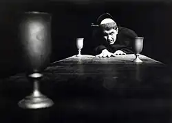 In the refectory of the monastery after the celebration of Mass, Luther's father is a guest. He has most reluctantly accepted his son's monastic vocation but has nevertheless made a generous donation to the monastery's funds. He drinks too much at luncheon and his comments make clear his disappointment that his intellectually brilliant son has confined himself to a religious order.[10]