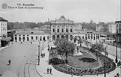 When the new Leopold Quarter railway station was built in 1854–55, the architect Antoine Trappeniers was commissioned to draw up plans for a large public square leading to the station. The Rue de Luxembourg/Luxemburgstraat was then in an embryonic state, and the square was created as its end point. The square was designed in a neoclassical style and to be as symmetrical as possible. Construction was carried out primarily between 1855 and 1861. Due to its proximity to the station, the square was popular among merchants, as well as restaurant and café owners. One house on the corner of the Rue d'Arlon/Aarlenstraat was, at one time, the home of Auguste Beernaert, prime minister from 1884 to 1894.[3][4]