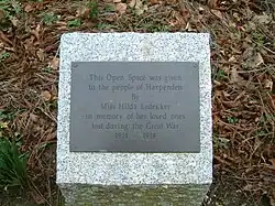 Lydekker Park is a 3-acre (1.2 ha) park in Harpenden, Hertfordshire. The land was formerly part of the garden of Harpenden Lodge, built in 1803, home for many years to the Lydekkers, one of the town's oldest families.[1] In 1937 Hilda Lydekker, last surviving member of the Lydekker family, entered into an agreement with the former Harpenden Urban District Council that the 11 acres (4.5 ha) of land attached to Harpenden lodge should become an open space for the people of Harpenden.[1] Her intention was that the open space should be a memorial to her two brothers and her fiancé, all of whom died in World War I.[2]