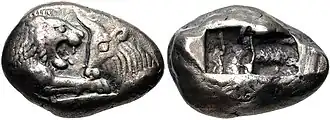 - ^ N. Cahill and J. Kroll, "New Archaic Coin Finds at Sardis," American Journal of Archaeology, Vol. 109, No. 4 (October 2005), p. 613.