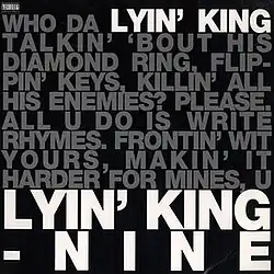 "Lyin' King" is the first single released from Nine's second album, Cloud 9. It was released on July 23, 1996 and was produced by Rob Lewis. "Lyin' King" was Nine's final charting single, making it to three different Billboard charts, including 35 on the Hot Rap Singles. The song is an indirect diss aimed at rappers who were trying to capitalize on the popular Mafioso rap at the time.