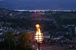 Annual Remembrance Sunday commemoration ceremonies take place at the Free French Memorial; in 2016 the occasion also marked 70 years since its unveiling.[35] For the 2018 First World War centenary Remembrance Sunday on Armistice Day, the commemorations at this monument began with a bagpiper at dawn, and in an evening ceremony attended by the French consul a bugler played the Last Post then the Lyle Hill beacon was lit, as were beacons across the United Kingdom.[36]