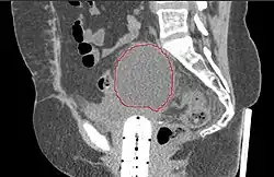 A lymphocele is a collection of lymphatic fluid within the body not bordered by epithelial lining.[1] It is usually a surgical complication seen after extensive pelvic surgery (such as cancer surgery) and is most commonly found in the retroperitoneal space. Spontaneous development is rare.[2]