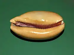 | A shell of Lyncina leviathan leviathan from Hawaii, anterior end towards the left | |