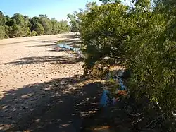 Riparian vegetation found along the river include Melaleuca fluviatilis, Casuarina cunninghamiana, Pandanus spiralis and Ficus racemosa which provide most of the cover.[5]