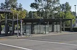 The Lynnwood Transit Center is located on the north side of Interstate 5 at 44th Avenue West, southwest of Alderwood Mall in Lynnwood. The 17.5-acre (7.1 ha) transit center includes 20 bus bays and a park and ride.[2] A five-story parking garage on the southeast side of the site provides 1,670 park and ride spaces and has driveways from two streets.[3] The bus bays have passenger information displays that have real-time arrival information for inbound buses. A customer service center called "RideStore" is located at the north end of the transit center.[4][5]