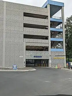 Construction on the five-story parking garage began in October 2020 and it opened for use on April 17, 2023.[33][34] The garage replaced the existing and temporary surface lots, which were then converted for construction staging and bus layover space; 226 surface stalls remained once construction is complete, giving Lynnwood Transit Center a total of 1,900 park and ride spaces.[34][35] The station campus was awarded LEED Gold certification in 2024 for its environmentally-friendly and sustainable design features.[36] Community Transit opened its rebuilt RideStore at the transit center on August 27, 2024.[37]