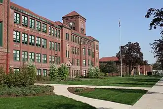 Lyons Township High School was opened on September 4, 1888. The enrollment included 39 students. An athletic field named Emmond Field was constructed in 1888, and a 1924–1929 expansion included the erection of a clock tower, auditorium, offices, library, and a gym. Leonard H. Vaughan (president of a seed company and former school board president,[4]) funded the erection of the Vaughan Building; it was constructed in 1949 for sporting events and classes.[5] In 1956, South Campus was opened about a mile south-west in nearby Western Springs to accommodate the community's growing population. The Corral was constructed in 1944 as a social place for all students to spend time with each other after school hours. In 2005, a performing arts center, a field house, and a pool were added to the South campus to complement the facilities at the North campus.[6][7]