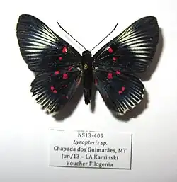 Lyropteryx terpsichore is a species of butterfly in the butterfly family Riodinidae, subfamily Riodininae and the Lyropteryx genus.