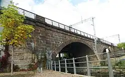 During World War II Lysaker Station was hit by five sabotage missions by the Norwegian resistance movement, in which tanks of gasoline, attached or not attached to railroad cars, were blown up. The sabotages took place on 16 December 1944 and 9, 10, 12 and 13 January 1945. On 13 January a tanker truck was attacked as well. There were three additional attacks on Lysaker in 1944 and 1945, two of them against factories and workshops.[10] Also, the Lysaker Bridge sabotage took place in the immediate vicinity of the station.[11]