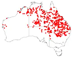 It is found in open forests and woodland.[5][6] However, the Northern Territory flora website describes it as occurring on rocky or gravelly ranges, on hills or rises, on sandplains, and on intermittent watercourses and run-on areas.[8]