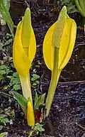 Lysichiton is a genus in the family Araceae. These plants are known commonly as skunk cabbage or less often as swamp lantern.[2] The spelling Lysichitum is also found. The genus has two species, one found in north-east Asia (Japan and Russian Far East), the other in north-west America (Aleutians to Santa Cruz County in California).[1][3]