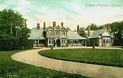 The Lytham Cottage Hospital and Convalescent Home, which was instituted for the relief of the poor when suffering from sickness or accident, was funded by Colonel John Talbot Clifton, Squire of Lytham, at an original cost of £1,200 and opened in 1871.[1] The original building was a two-storey structure with four wards containing 16 beds. There was an operating room for "cases of a severe nature". A mortuary was located in the yard.[2]