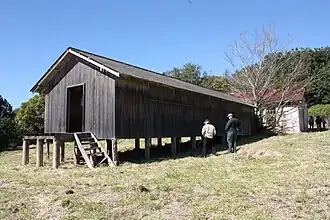 - A holding pen (LH-028) associated with the former butcher's shop/meat store, measuring 9 metres (30 ft) long by 6 metres (20 ft) wide, with a perimeter fence of steel posts with wire mesh. A plywood chute on the west side provides access to the butcher shop/meat store.[1]