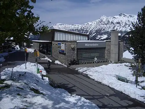 Mürren is a railway station and terminus of the Bergbahn Lauterbrunnen-Mürren, a hybrid cable car and rail link that connects it with the village of Lauterbrunnen in the Bernese Oberland region of Switzerland. It takes its name from the resort village of Mürren in which it is situated.[1][2]