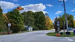 Near Albany Harbor, M-134 follows Scenic Road to an intersection with M-48. The main route of the Lake Huron Circle Tour turns north on M-48 while a locally designed loop route continues east on M-134 along Lake Huron. The highway continues past De Tour State Park and St. Vital Point before heading northeasterly to De Tour Village. In the middle of the village, M-134 runs north on Ontario Street and turns east along Elizabeth Street to connect to the ferry docks; the loop tour continues north out of town on county roads. The highway uses the ferry, run by the regional public transportation agency, to cross the De Tour Passage. Once on Drummond Island, M-134 follows Channel Road northward along the passage before turning eastward. The trunkline cuts across to run along Sturgeon Bay on the north shore of the island. On the east side of the bay, M-134 turns inland and runs east to the Four Corners, south of the unincorporated community of Drummond. The trunkline terminates at that intersection south of the Drummond Island Airport where Channel, Townline, Johnswood, and Shore roads (west, north, east and south respectively) come together.[5][6] M-134 is one of three state highways in Michigan located on an island; the two other state highways located on islands are M-185 on Mackinac Island and M-154 on Harsens Island.[7]