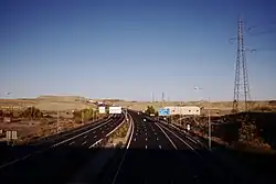 The M-45 is a highway bypass built in the Community of Madrid of regional importance. It begins at Exit 28-B of the M-40 highway, in Carabanchel, and ends at Coslada, where it joins with the M-50 . The highway connects two national highways, the A-2 and A-5 .