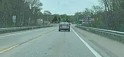 By the end of the 1950s, the routing through Muskegon was altered. Instead of terminating in the park at the outlet of Muskegon Lake into Lake Michigan,[17] M-46 was routed to follow US 16 to the car ferry docks.[18] The last section of gravel highway was also paved in Newaygo County near the Montcalm County line.[19][20] The routing of M-46 between Casnovia and Howard City was altered in 1973 when the US 131 freeway was opened north of Cedar Springs by then-Congressman Gerald R. Ford.[21] M-46 was restored to the Kent City–Cedar Springs roadway it used in the 1930s and routed concurrently along US 131 again.[22] [23] In the process, M-46 replaced a section of M-57 that had been designated along 17 Mile Road in late 1948 or early 1949.[24][25] The last change to M-46's routing was made in the early 1980s. The extension through Muskegon to the car ferry docks was reversed, truncating the highway to its current terminus at then-Bus. US 31 in 1984.[26][27] The business loop was shifted away from this location in 2007, leaving M-46 to terminate at a junction with a city street instead of another state highway.[28][29]