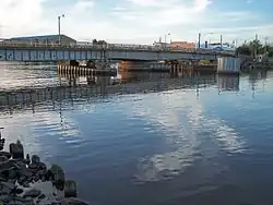 MDOT determined in the early part of the 21st century that the swing bridge had "operational problems".[21] Construction in 2006 replaced the span with a new structure and realigned both M-64 and M-38 in the village.[22] That October, the new bridge was opened upstream of the former crossing.[23] As a result, the northern terminus of M-64 is now at a junction with US 45 and M-38.[5]