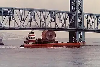 MOBRO Marine, Inc. tug and barge transporting a turbine to a Georgia-Pacific plant in 1984.