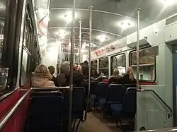 Each tram has four motors totalling 176 kilowatts (236 hp) in power output, giving a maximum speed of 60 kilometres per hour (37 mph). The trams seat 38 people and stand 78 more. The cars are all single-ended (with a single driving cab) and single-sided (with passenger doors only on one side). All cars were built for operation in right-hand traffic, with doors on the right facing the drivers cab.[1][2]