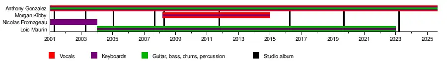 Anthony Gerard Gonzalez (born 13 March 1980)[13][14][15] grew up in Antibes, France, together with his brother Yann.[16] His family had a great interest in football and Gonzalez had trials with AS Cannes,[17] while his maternal grandfather is the French international Laurent Robuschi.[16][17] At the age of 14 he was injured, and turned to music instead when his parents bought him a guitar.[16] He developed his interest in music and American culture at secondary school.[18] With Fromageau, he formed a post-rock group called My Violent Wish.[18]