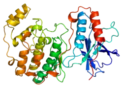 - ^ Raingeaud J, Gupta S, Rogers JS, Dickens M, Han J, Ulevitch RJ, Davis RJ (Mar 1995). "Pro-inflammatory cytokines and environmental stress cause p38 mitogen-activated protein kinase activation by dual phosphorylation on tyrosine and threonine". The Journal of Biological Chemistry. 270 (13): 7420–6. doi:10.1074/jbc.270.13.7420. PMID 7535770.