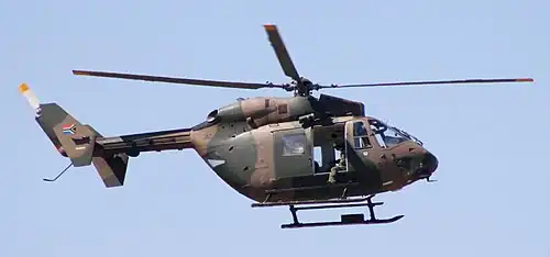 The MBB/Kawasaki BK 117 is a twin-engined light utility–transport helicopter. It was jointly developed and manufactured by Messerschmitt-Bölkow-Blohm (MBB) of Germany and Kawasaki of Japan. MBB was later purchased by Daimler-Benz and eventually became a part of Eurocopter, which was later rebranded as Airbus Helicopters.