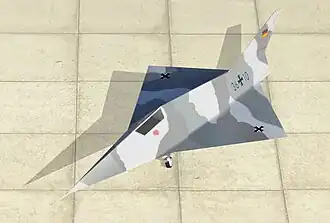Using the results from the Lampyridae program, DASA decided to research on a more mature and practical stealth design called TDEFS (Technology Demonstrator for Enhancement and Future Systems).[9] A small scale high speed wind tunnel model called FTT (Fliegender Technologie-Träger, English: Flying Technology Platform) and an uncrewed version FTTU. The aircraft was to have combined the faceted stealth technology of the Lampyridae with newly developed radar absorbent materials, but also fly-by-wire and thrust vectoring from the X-31. Some of these technologies were originally intended to be included in an upgrade of the Eurofighter Typhoon.[10] However, the simple faceted stealth technology it made use of started to become obsolete in the 1990s, supposedly contributing to the decision to terminate the program.
