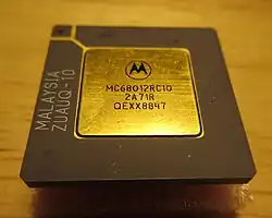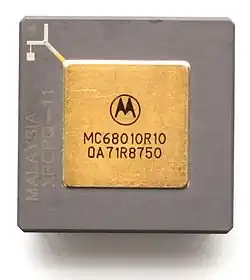 The Motorola MC68010 and Motorola MC68012 are 16/32-bit microprocessors from Motorola, released in 1982 as successors to the Motorola 68000.[3] The 68010 and 68012 added virtualization features, optimized loops and fixed several small flaws to the 68000. The MC68010 variants were pin compatible with its predecessor while the MC68012 is an 84-pin PGA version with its directly accessible memory space extended to 2 GiB.[2][4]