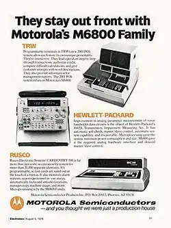 - ^ "It's the total product family". Electronics. 48 (1). New York: McGraw-Hill: 37. January 9, 1975. Archived from the original on November 11, 2012. Retrieved June 7, 2011. Motorola advertisement emphasizing their complete set of peripheral chips and development tools. This shorten the customers product design cycle.