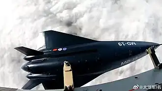 MD-22 (Chinese: 鸣镝-22 / 鸣镝-二十二; pinyin: míng dí-22 / míng dí-èrshíèr) is a hypersonic unmanned combat aerial vehicle developed by the CAS Institute of Mechanics and the Guangdong Aerodynamic Research Academy (GARA), this Unmanned Aerial Vehicle, the MD-22, is a near-space hypersonic technology demonstrator and test platform. The aircraft can be launched through a specialized Xian H-6 mothership.[1]
