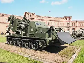 The MDK-2M was a Soviet Cold War era artillery tractor. It was based on the chassis of the AT-T,[1] which itself is based on the chassis and drive system from the T-54 tank.