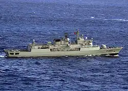 | Type | Class | Country | Number | Delivery | Weight | Length o.a. (m) | Beam (m) | Draught (m) | Main gun | SAM | ASM | Image |