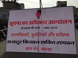 The Mazdoor Kisan Shakti Sangathan (Association for the Empowerment of Labourers and Farmers) is an Indian political organisation best known for its demand for the Right to Information Act (RTI) which grew out of the demand for minimum wages for workers.[1]