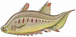 | Lupopsyroides[25] | L. macracanthus | A toothless fish with simple scales and no apparent bony skeleton apart from fin spines.[16][25] | |