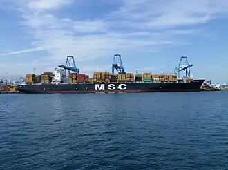 MSC Sindy is a container ship operated by the Mediterranean Shipping Company. She was built by Samsung Heavy Industries and sails under the flag of Panama.[1]