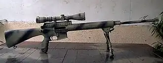 The Marine Scout Sniper Rifle (MSSR) is a Philippine semi-automatic designated marksman rifle developed by the Philippine Marine Corps for their Marine Scout Snipers. Designed in the mid-1990s to replace severely-outdated battle rifles then used as marksman rifles, the MSSR is essentially an M16A1 that has been heavily modified and accurized to serve as a marksman rifle.[1][2]