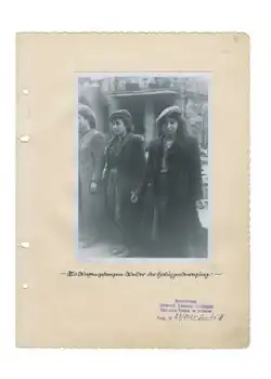 The original caption of the photograph was Mit Waffen gefangene Weiber der Haluzzenbewegung ("Hehalutz women captured with weapons").[14] Jürgen Stroop later described the bravery of the Jewish women who took up arms:[12][15]