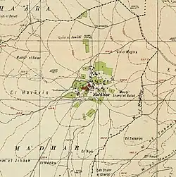 In the late 19th century, Ma'dhar was one of several villages settled by Algerian migrants under the auspices of the Ottoman Empire. The settlers belonged to the tribe of Awlad Sidi Khaled and Sidi Amr, who migrated from Oued El Berdi and Bouïra, in Algeria.[6]