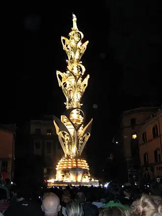 The machine's procession is a significant event in Viterbo, attracting thousands of spectators, and is included in the UNESCO Representative List of the Intangible Cultural Heritage of Humanity.[1]
