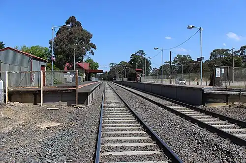 Macedon railway station is a regional railway station on the Deniliquin line, part of the Victorian railway network. It serves the north-western suburb and town of Macedon, in Victoria, Australia. Macedon station is a ground level unstaffed station, featuring two side platforms. It opened on 8 July 1861.[1][2]