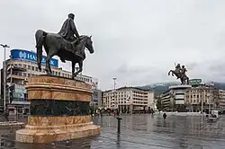 On 2 May 2010, two monuments of Goce Delčev and Dame Gruev were erected near the Stone Bridge.[3] The Centar Municipality built a high monument of a Warrior on Horseback and fountain which was unveiled on 8 September 2011, on the 20-year anniversary of Macedonia's independence referendum from Yugoslavia.[4]