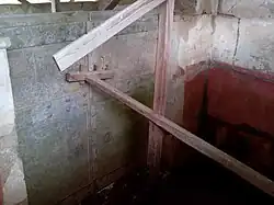 To protect the marble doors from falling over, they are supported by wooden struts and metal bars.