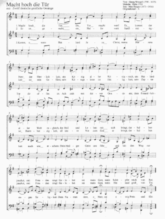 ![]() "Macht hoch die Tür" in a five-part setting by Max Reger | |