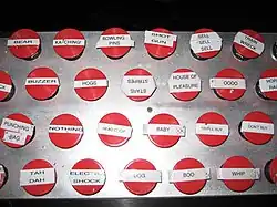 Cramer has a panel of oversized red buttons, which activate various sound effects and onscreen graphics,[18][19][20][21] including those related to bulls and bears.[1] The soundboard originated in the radio show Jim Cramer's Real Money, which preceded Mad Money.[22] The show also features heavy metal music at times.[23][24]