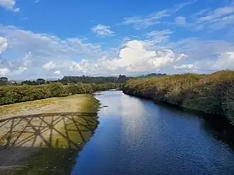The Mad River (Wiyot: Baduwa't[4]) is a river in upper Northern California. It flows for 113 miles (182 km)[3] in a roughly northwest direction through Trinity County and then Humboldt County, draining a 497-square-mile (1,290 km2) watershed into the Pacific Ocean north of the city of Arcata near Arcata–Eureka Airport[5] in McKinleyville. The river's headwaters are in the Coast Range near South Kelsey Ridge.